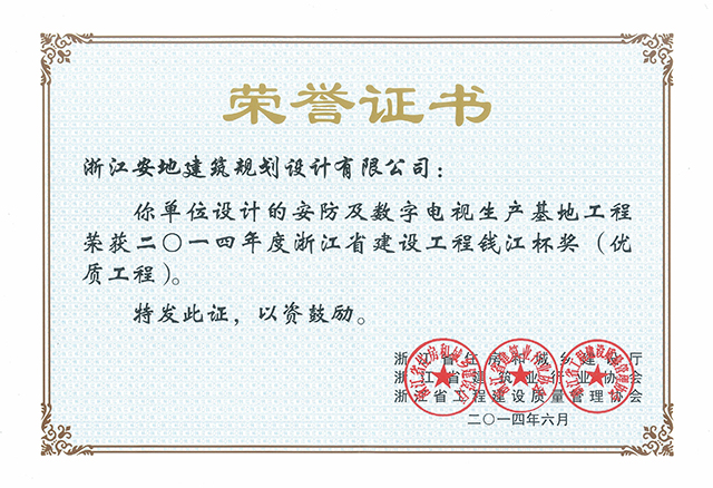 2014年度浙江省建设工程钱江杯奖获奖喜报