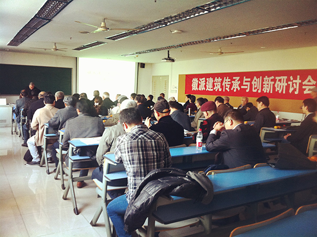 论文交流阶段,首先由胡晓鸣教授发言,介绍了我院的西溪南古村落农民安置点规划项目,展示了我公司建筑规划设计的创新思路和专业水平;陈爱中局长介绍了明清婺源民宅的历史与形态;陈继腾院长就徽州民居传统建筑空间的人性意识做了详实的分析与研究;洪树林主任从审美的角度评析了绩溪龙川胡氏宗祠的审美价值等……各位来宾从徽派建筑的美学价值、生态特性、传承与鉴赏等多个角度进行了精彩的发言,让大家大饱耳福、受益匪浅。由我公司赞助出版的《感知徽派建筑》论文集,作为本次研讨会的成果,赠予每一位出席的来宾。