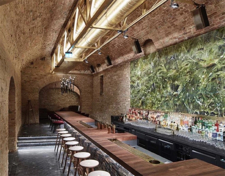 其中一个获得大奖的室内设计很好的展现了他们的设计理念。面对古迹,设计尽显简洁,管线全部浓缩在一起悬挂的珩架中,和吧台成为仅存的两个新建构建,空间于是干净而纯粹。最有意思的是,他认为管线有一种技术的美感,于是刷成了金色让其也成为一个闪亮的主角~真的是个浪漫的人呢。