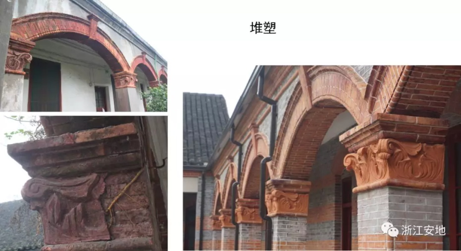对于堆塑破损或局部缺失处,根据原有痕迹及现状保留式样,采用传统工艺、材料(石灰)进行修复。