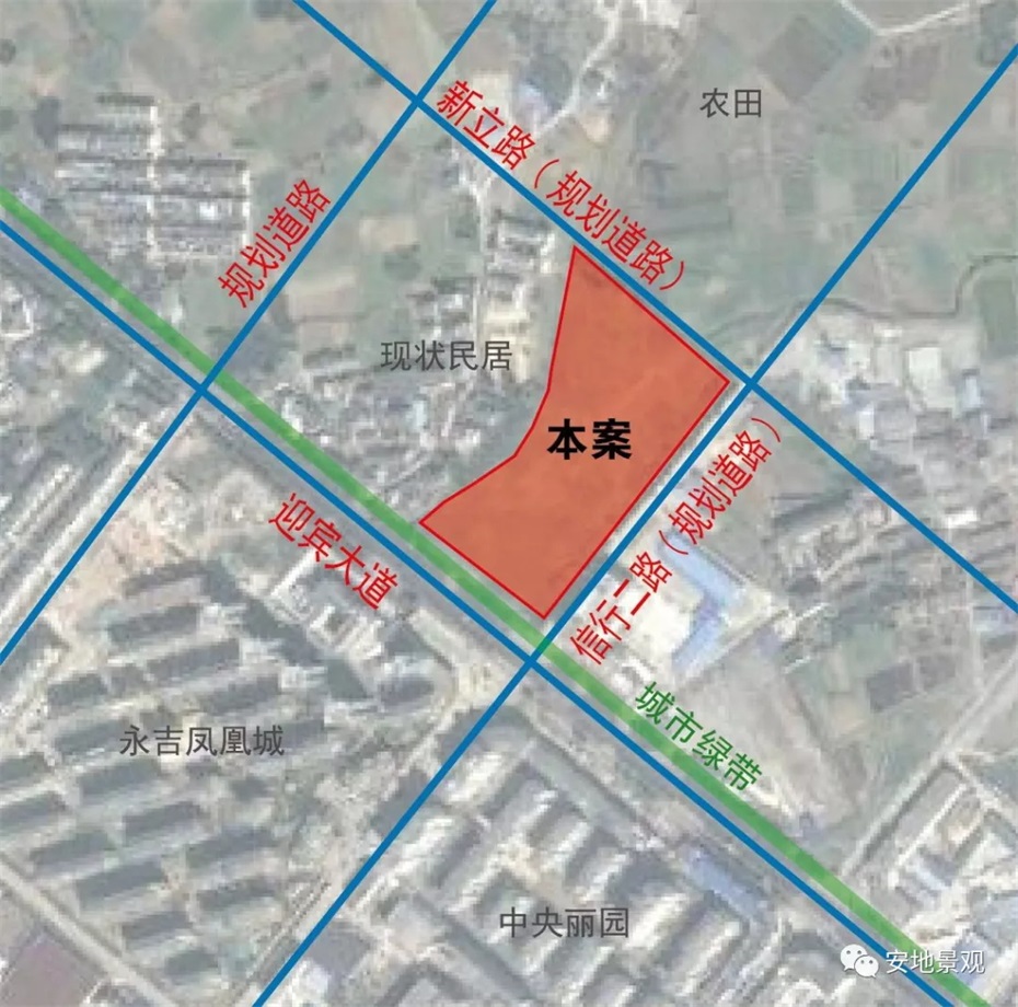项目位于黄山市徽州区,迎宾大道与信行二路交叉口北侧,地块东侧隔信行二路为黄山驰通汽车综合性能检测站,南侧为15M宽城市绿化带,隔迎宾大道为徽州凤凰城。