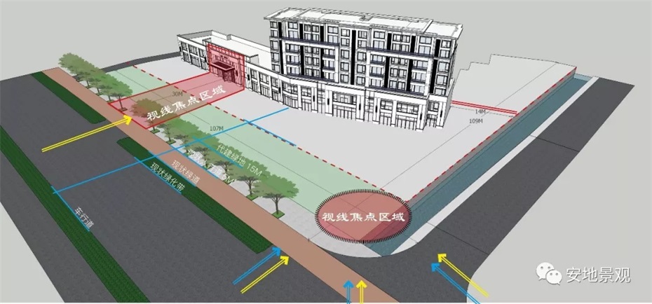 1.项目的景观设计和建筑布局同步规划,充分保证城市界面的视觉通透;
