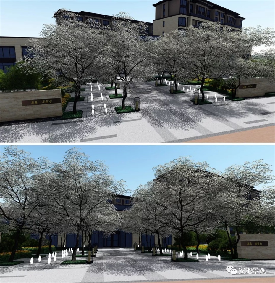 2018年11月,安徽黄山市徽州区尚紫台项目售楼处景观建成,安地景观设计师代表应甲方邀请到现场察看。尽管安徽人民十分满意,但是根据从前线发回的照片看,还是存在诸多欠缺。