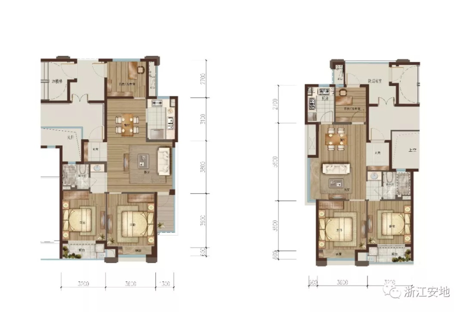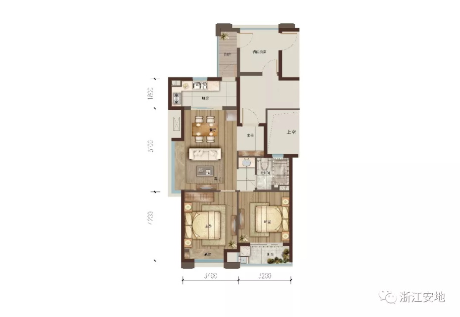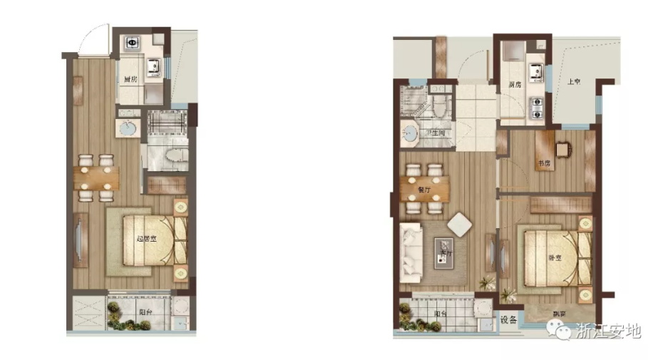 第二种,“1+1+1”三代亲情户型,设计约95-110㎡三房的公寓,让老、中、少同住一个屋檐下。