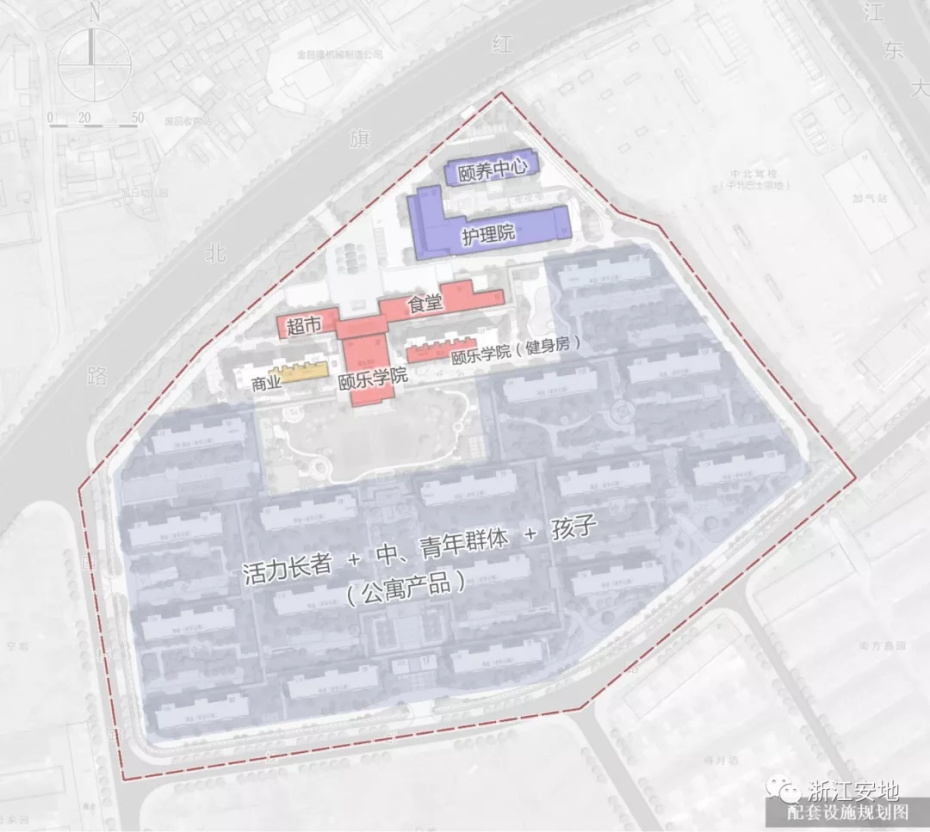 “全龄”是指社区人口结构是全年龄段的,是包含孩子,年轻人,中年人,老年人的。全龄社区模式通过整合养老、教育、医疗、普通居住等资源,提供一个解决子女教育、父辈养老、自身养老、购房置业等多重需求的宜居社区。全龄混合社区出发点及最终目的不仅是满足购房需求,更是“让所有老年人都能老有所养、老有所依、老有所乐、老有所安”。