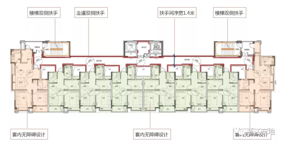 ② 楼梯设计满足无障碍设计规范,两侧均设置楼梯扶手。