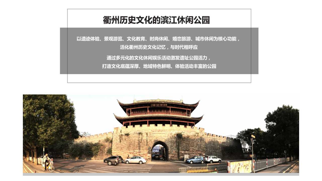 以遗迹体验、景观游览、文化教育、时尚休闲、婚恋旅游、城市休闲为核心多元文化休闲活动,活化衢州历史文化记忆,通过激发遗址公园活力,与时代相呼应。
