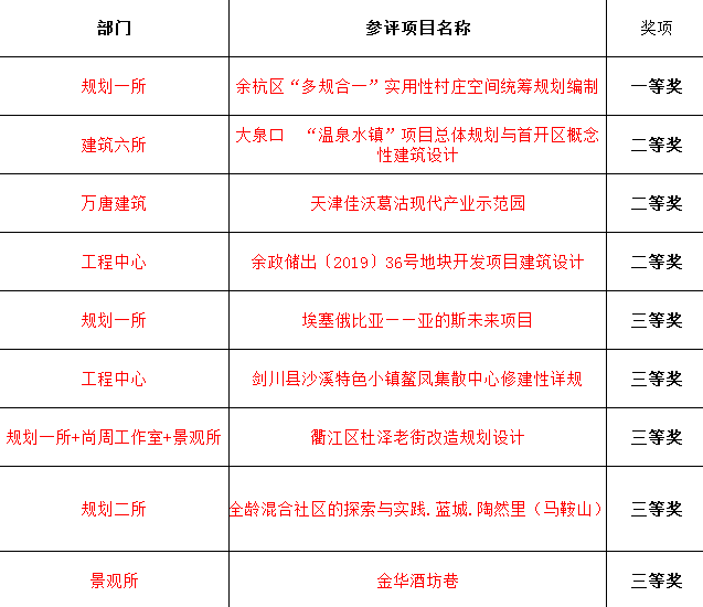 2020年1月6日,浙江安地邀请省内著名专家沈济黄大师,省自然资源厅顾浩总规划师,浙江省建筑院副院长许世文总建筑师,浙大教授浙大建筑院华晨总规划师,省林草厅风景园林处虞建华副处长评选我院2019年度优秀项目,评出一等奖一个,二等奖三个,三等奖五个。结果公布如下: