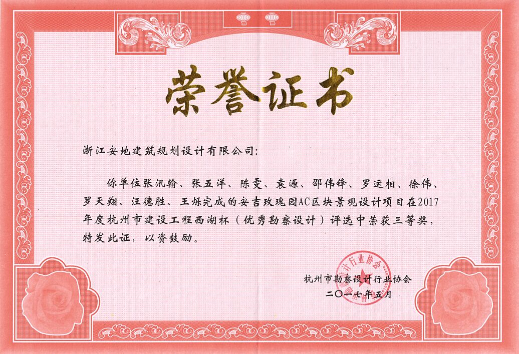 时间:2019-02-212017年度杭州市建设工程西湖杯(优秀勘察设计)三等奖