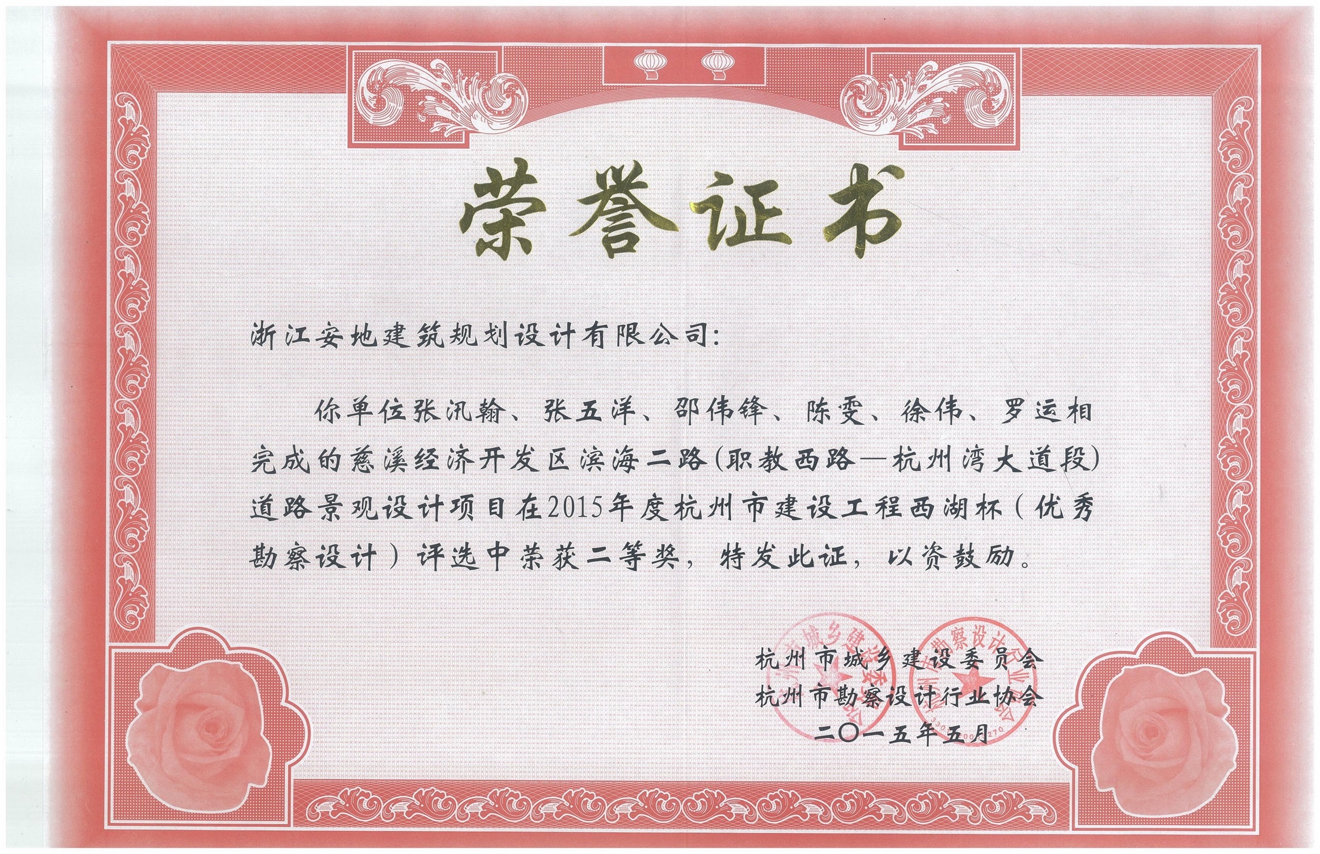 时间:2019-02-212015年度杭州市建设工程西湖杯(优秀勘察设计)二等奖