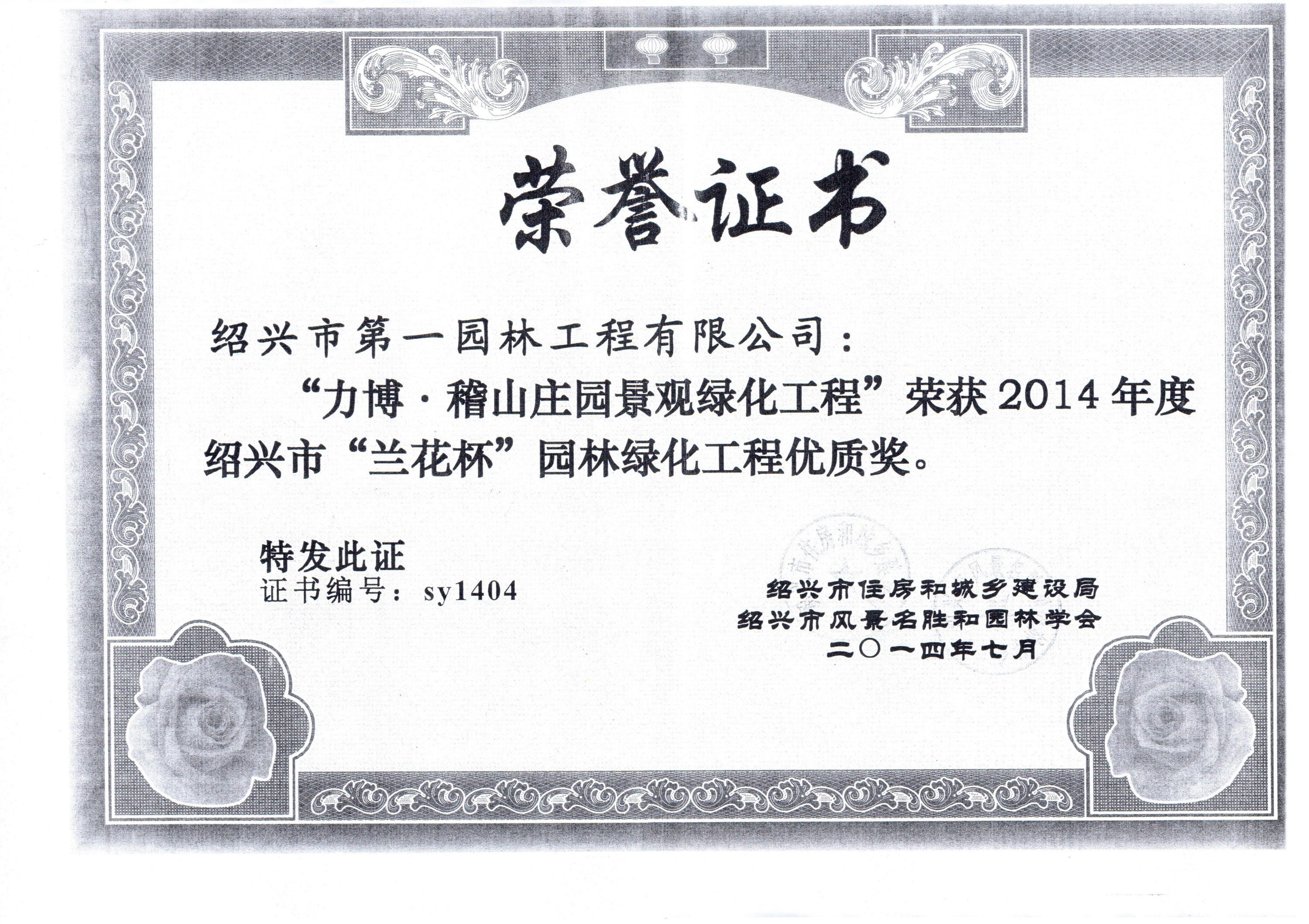 2014年度绍兴市“兰花杯”园林绿化工程优质奖
